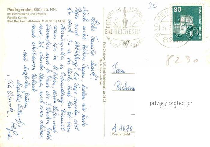 72882917 alte Postkarte Bad Reichenhall Padingeralm postalisch gelaufen Erhaltung siehe scans [AndreD76] KatCode: 11110009172114