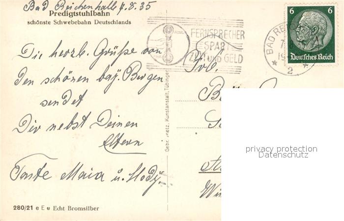 73362799 alte Postkarte Bad Reichenhall Panoramakarte Predigtstuhlbahn postalisch gelaufen Erhaltung siehe scans [LiesaD40] KatCode: 11110009172114