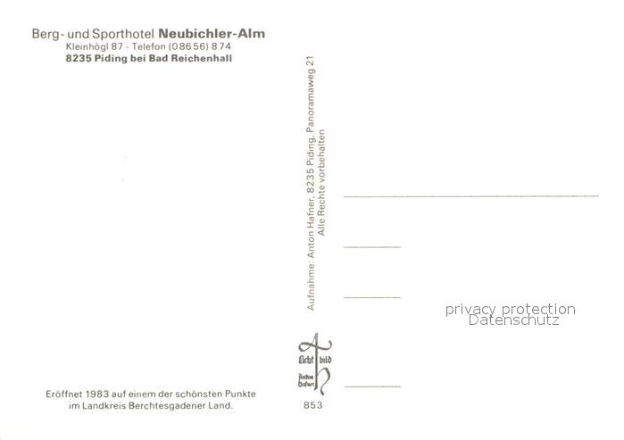 72935313 Bad Reichenhall Pidign Sporthotel Neubichler-Alm postalisch nicht gelaufen Erhaltung siehe scans [LiesaD40] KatCode: 11110009172114
