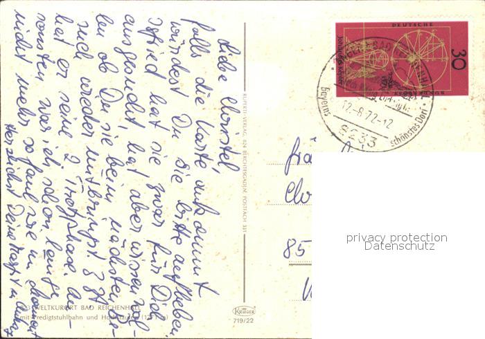 71930021 alte Postkarte Bad Reichenhall Predigerstuhlbahn Hochstaufen Weltkulturort postalisch gelaufen Erhaltung siehe scans KatCode: 11110009172114