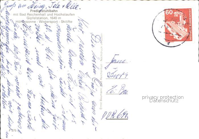 71930020 alte Postkarte Bad Reichenhall Predigerstuhlbahn Hochstaufen postalisch gelaufen Erhaltung siehe scans KatCode: 11110009172114