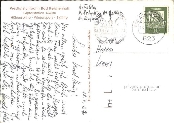 71970693 alte Postkarte Bad Reichenhall Predigtstuhlbahn postalisch gelaufen Erhaltung siehe scans KatCode: 11110009172114