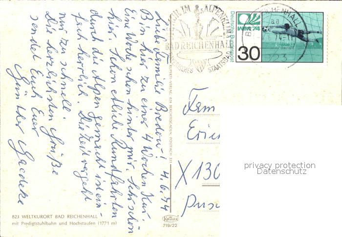 71929258 alte Postkarte Bad Reichenhall Predigtstuhlbahn postalisch gelaufen Erhaltung siehe scans KatCode: 11110009172114