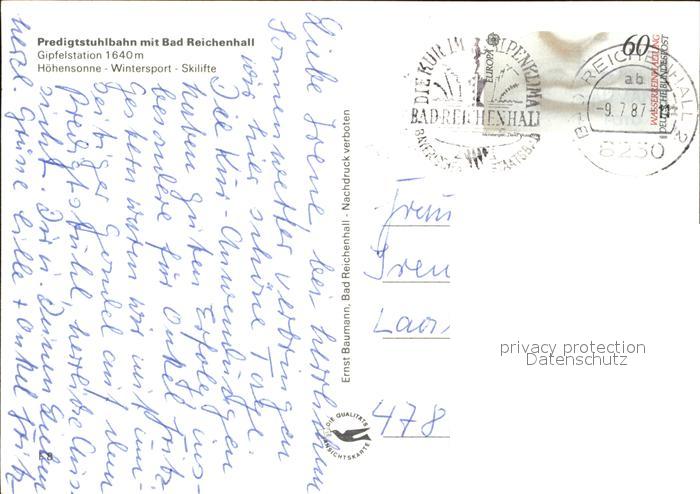 72425059 alte Postkarte Bad Reichenhall Predigtstuhlbahn postalisch gelaufen Erhaltung siehe scans KatCode: 11110009172114