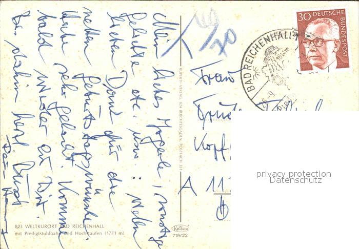 71899374 alte Postkarte Bad Reichenhall Predigtstuhlbahn Bergbahn Hochstaufen Chiemgauer Alpen postalisch gelaufen Erhaltung siehe scans KatCode: 11110009172114