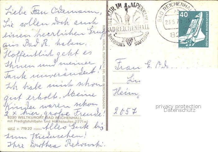 72374715 alte Postkarte Bad Reichenhall Predigtstuhlbahn Hochstaufen postalisch gelaufen Erhaltung siehe scans KatCode: 11110009172114