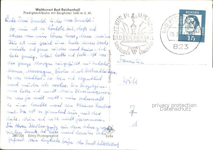 71942147 alte Postkarte Bad Reichenhall Predigtstuhlbahn mit Berghotel postalisch gelaufen Erhaltung siehe scans KatCode: 11110009172114
