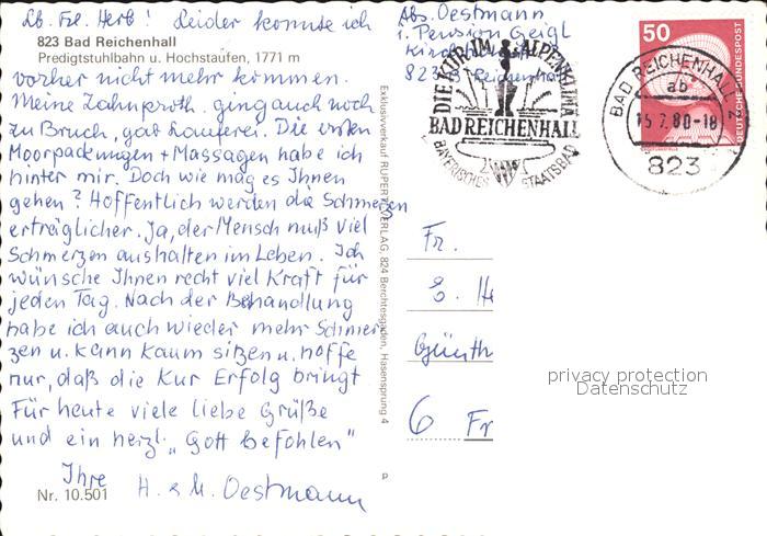 72483601 alte Postkarte Bad Reichenhall Predigtstuhlbahn Panorama Hochstaufen postalisch gelaufen Erhaltung siehe scans KatCode: 11110009172114