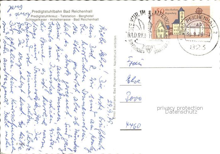 72443560 alte Postkarte Bad Reichenhall Predigtstuhlbahn Talstation Berghotel Schlegelkaser Hotelterrasse postalisch gelaufen Erhaltung siehe scans KatCode: 11110009172114