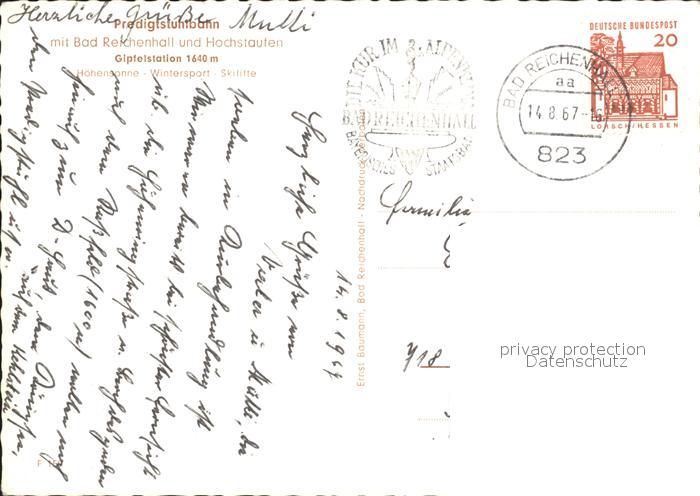 72310554 alte Postkarte Bad Reichenhall Predigtstuhlbahn und Hochstaufen postalisch gelaufen Erhaltung siehe scans KatCode: 11110009172114