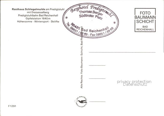 72042779 Bad Reichenhall Rasthaus Schlegelmulde am Predigstuhl Dreisesslberg postalisch nicht gelaufen KatCode: 11110009172114