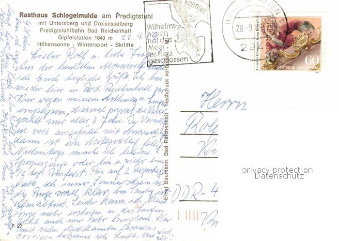 72843726 alte Postkarte Bad Reichenhall Rasthaus Schlegelmulde Predigtstuhl Untersberg Dreisesselberg postalisch gelaufen Erhaltung siehe scans [PaolaD17] KatCode: 11110009172114