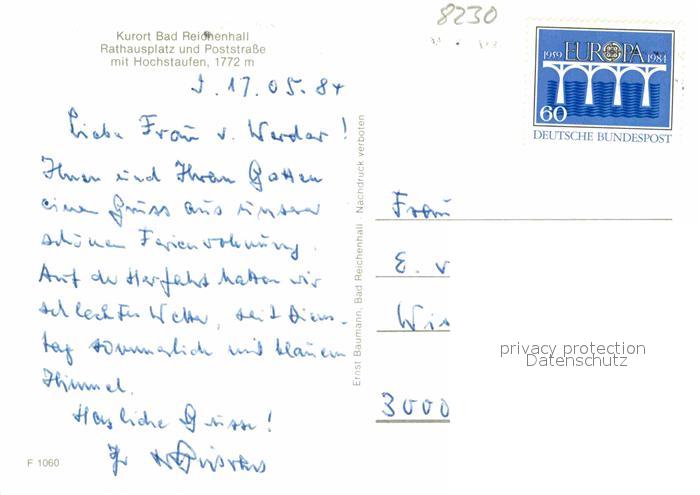 72886851 alte Postkarte Bad Reichenhall Rathausplatz Poststrasse Hochstaufen postalisch gelaufen Erhaltung siehe scans [WerneD78] KatCode: 11110009172114