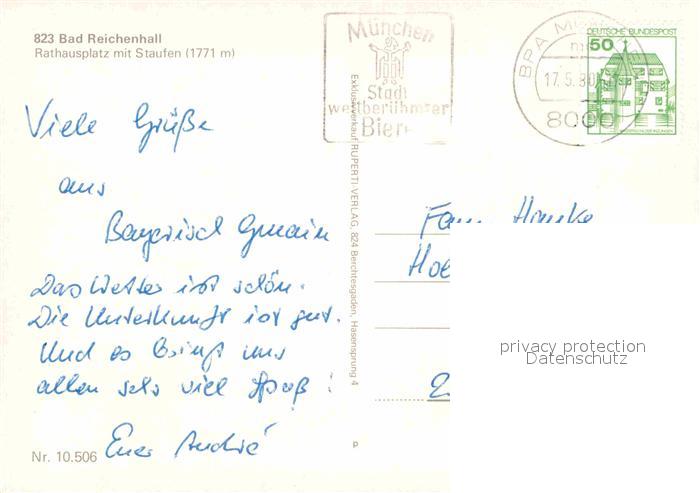 72775092 alte Postkarte Bad Reichenhall Rathausplatz Staufen postalisch gelaufen Erhaltung siehe scans [NatalD47] KatCode: 11110009172114
