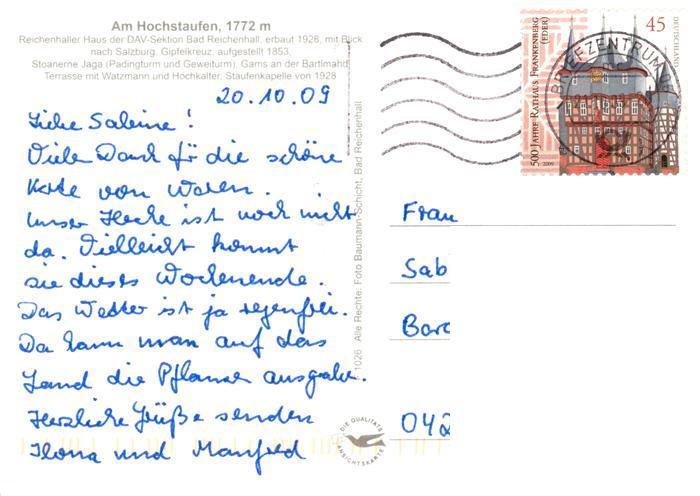 73882792 alte Postkarte Bad Reichenhall Reichenhaller Haus am Hochstaufen Teilansichten Gemse Terrasse Staufenkapelle postalisch gelaufen Erhaltung siehe scans [FriedD77] KatCode: 11110009172114