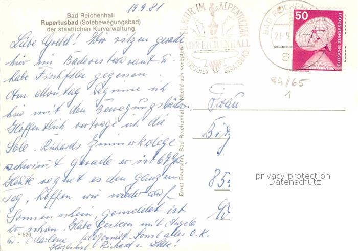 72781764 alte Postkarte Bad Reichenhall Rupertusbad Solebewegungsbad postalisch gelaufen Erhaltung siehe scans [FriedD77] KatCode: 11110009172114