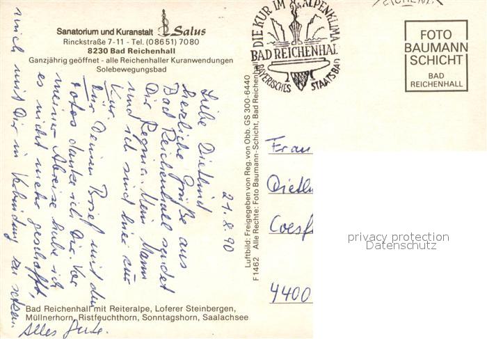 73721137 alte Postkarte Bad Reichenhall Sanatorium und Kuranstalt Salus Fliegeraufnahme postalisch gelaufen Erhaltung siehe scans [WerneD78] KatCode: 11110009172114
