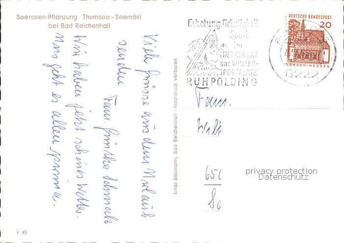72296406 alte Postkarte Bad Reichenhall Seerosen Pflanzung im Thumsee Seemoesl postalisch gelaufen Erhaltung siehe scans KatCode: 11110009172114