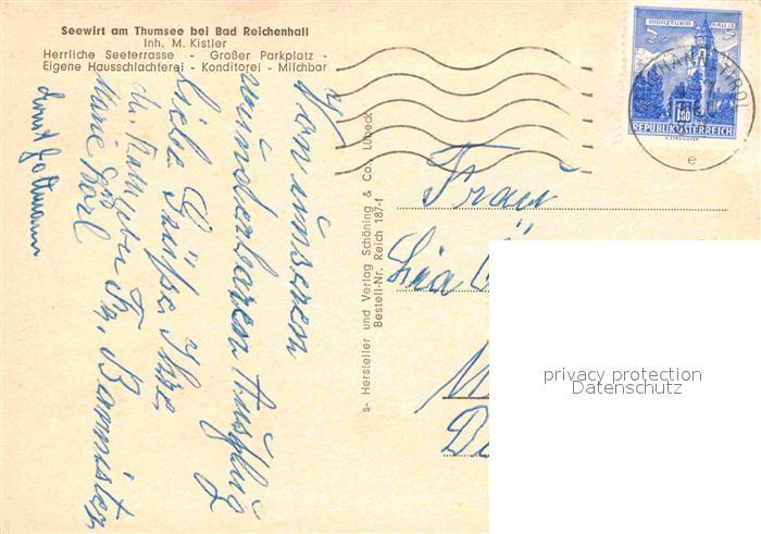 72792170 alte Postkarte Bad Reichenhall Seewirt am Thumsee postalisch gelaufen Erhaltung siehe scans [LiesaD40] KatCode: 11110009172114
