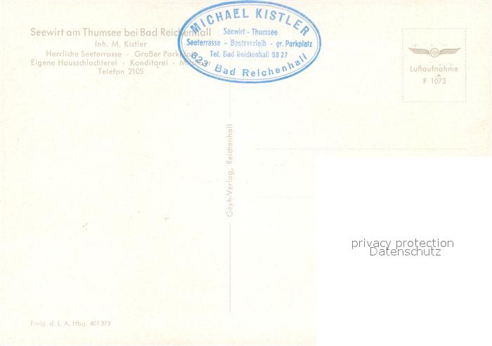 73173962 Bad Reichenhall Seewirt amThumsee Fliegeraufnahme postalisch nicht gelaufen Erhaltung siehe scans [NatalD47] KatCode: 11110009172114