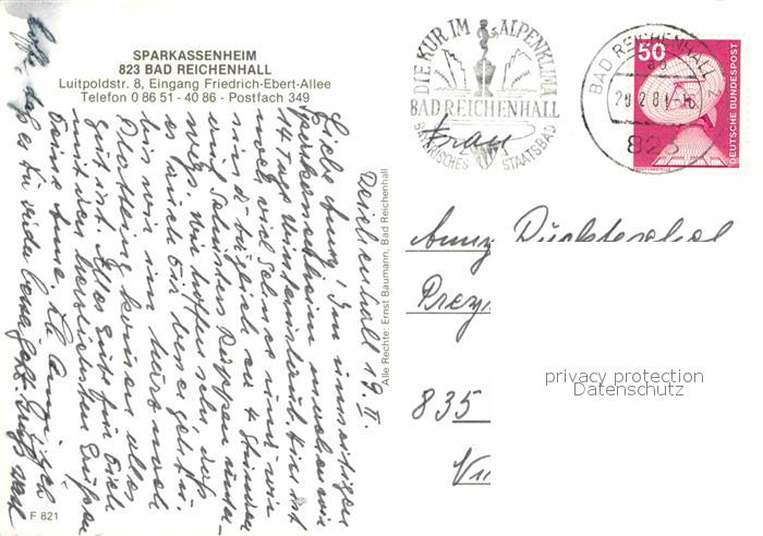 72653626 alte Postkarte Bad Reichenhall Sparkassenheim postalisch gelaufen Erhaltung siehe scans [FriedD77] KatCode: 11110009172114