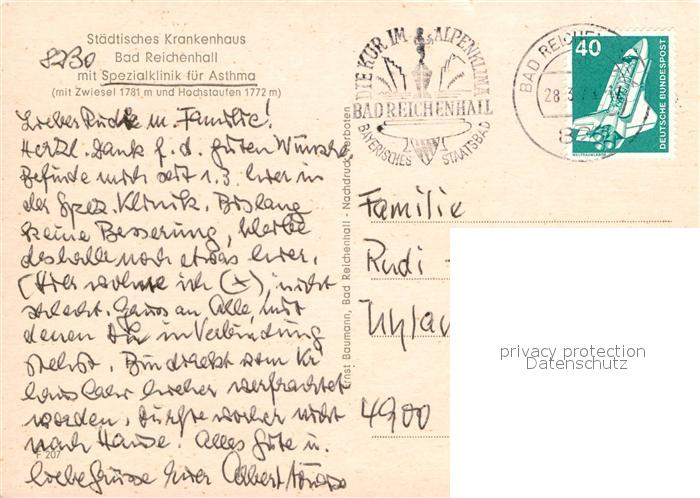 73010404 alte Postkarte Bad Reichenhall Spezialklinik fuer Asthma mit Zwiesel und Hochstaufen postalisch gelaufen Erhaltung siehe scans [WerneD78] KatCode: 11110009172114