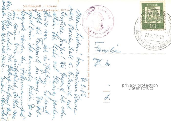 73719541 alte Postkarte Bad Reichenhall Stadtberglift Terrasse Gaststaette Blick zu Hochstaufen Chiemgauer Alpen postalisch gelaufen Erhaltung siehe scans [FriedD77] KatCode: 11110009172114