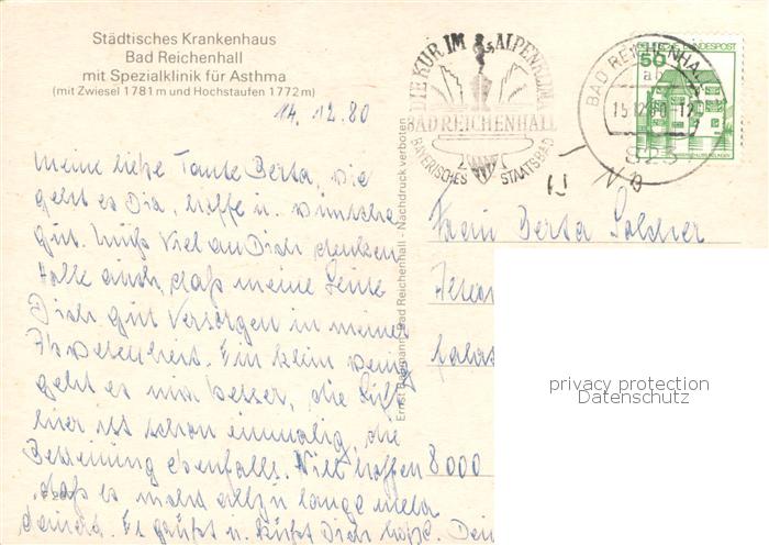 73767190 alte Postkarte Bad Reichenhall Staedt Krankenhaus mit Spezialklinik fuer Asthma postalisch gelaufen Erhaltung siehe scans [FriedD77] KatCode: 11110009172114