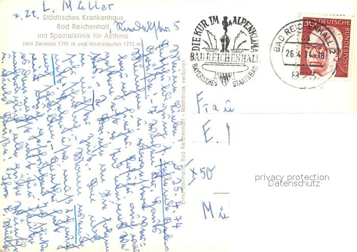 72989645 alte Postkarte Bad Reichenhall Staedt Krankenhaus postalisch gelaufen Erhaltung siehe scans [WerneD78] KatCode: 11110009172114