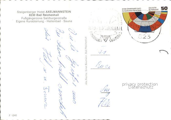 72575920 alte Postkarte Bad Reichenhall Steigenberger Hotel Axelmannstein postalisch gelaufen Erhaltung siehe scans [LiesaD40] KatCode: 11110009172114