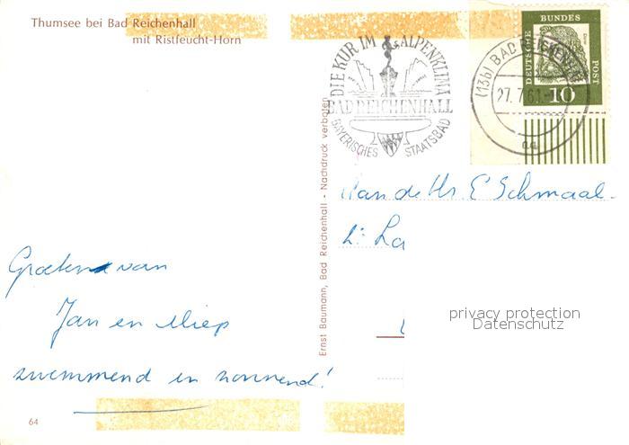 72928616 alte Postkarte Bad Reichenhall Thumsee mit Ristfeucht Horn postalisch gelaufen Erhaltung siehe scans [WerneD78] KatCode: 11110009172114