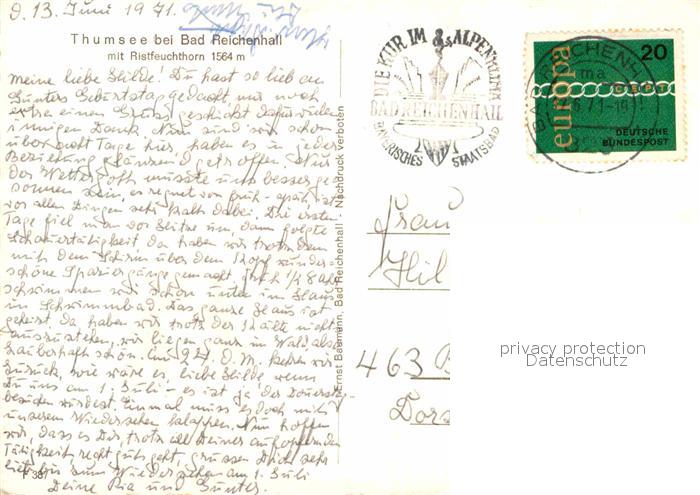 72656748 alte Postkarte Bad Reichenhall Thumsee Ristfeuchthorn postalisch gelaufen Erhaltung siehe scans [AndreD76] KatCode: 11110009172114