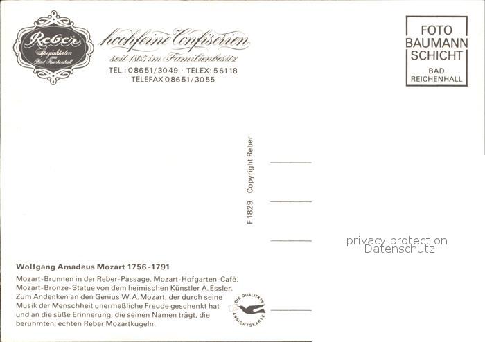 72285500 Bad Reichenhall Wolfgang Amadeus Mozart Brunnen Hofgarten Cafe Reber postalisch nicht gelaufen Erhaltung siehe scans KatCode: 11110009172114