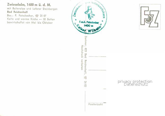 72620594 Bad Reichenhall Zwieselalm postalisch nicht gelaufen Erhaltung siehe scans [LiesaD40] KatCode: 11110009172114