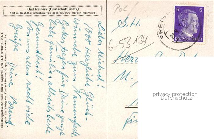 43309063 Bad Reinerz Kuenstlerkarte postalisch gelaufen Erhaltung siehe scans [NatalD47] old postcard Nata Katcode 11520