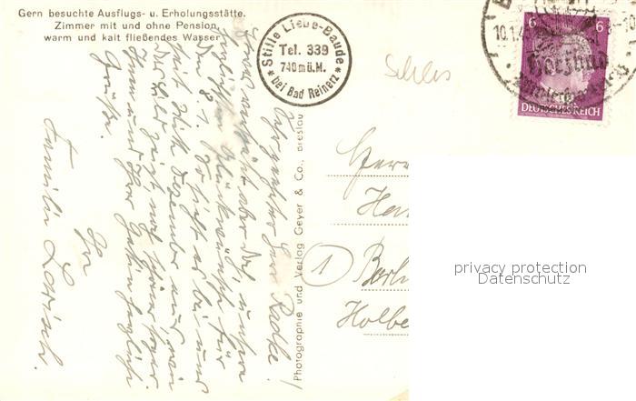 old postcard Bad Reinerz Niederschlesien Stille Liebe Baude postalisch gelaufen Erhaltung siehe scans [WerneD78]