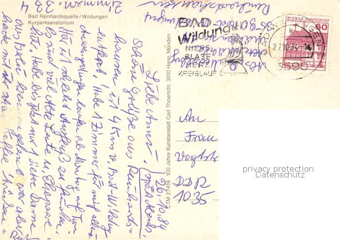73160679 alte Postkarte Bad Reinhardsquelle Kurparksanatorium postalisch gelaufen Erhaltung siehe scans [FriedD77] KatCode: 11110006635003