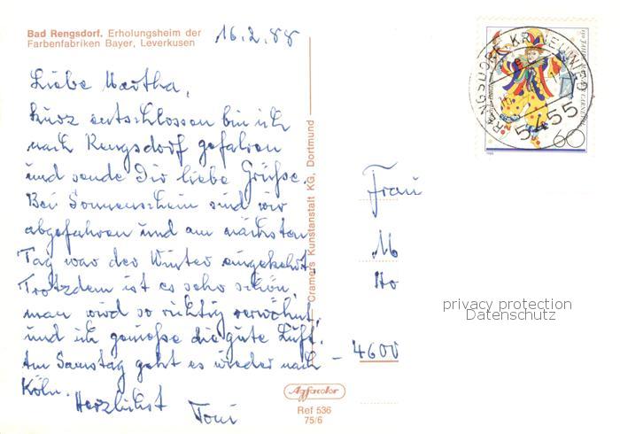 73780396 alte Postkarte Bad Rengsdorf Erholungsheim der Farbenfabrik Bayer Leverkusen postalisch gelaufen Erhaltung siehe scans [WerneD78] KatCode: 11110007138061