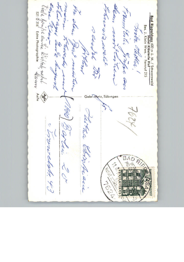 31151767 Bad Rippoldsau Hotel Kloesterle Hof postalisch nicht gelaufen KatCode: