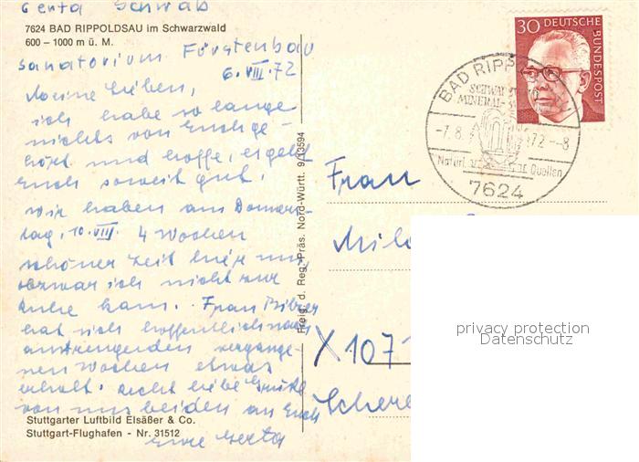 72902931 alte Postkarte Bad Rippoldsau Schwarzwald Fliegeraufnahme postalisch gelaufen Erhaltung siehe scans [FriedD77] KatCode: 11110008237075