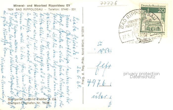 73759574 alte Postkarte Bad Rippoldsau Schwarzwald Fliegeraufnahme Gesamtansicht postalisch gelaufen Erhaltung siehe scans [LiesaD40] KatCode: 11110008237075