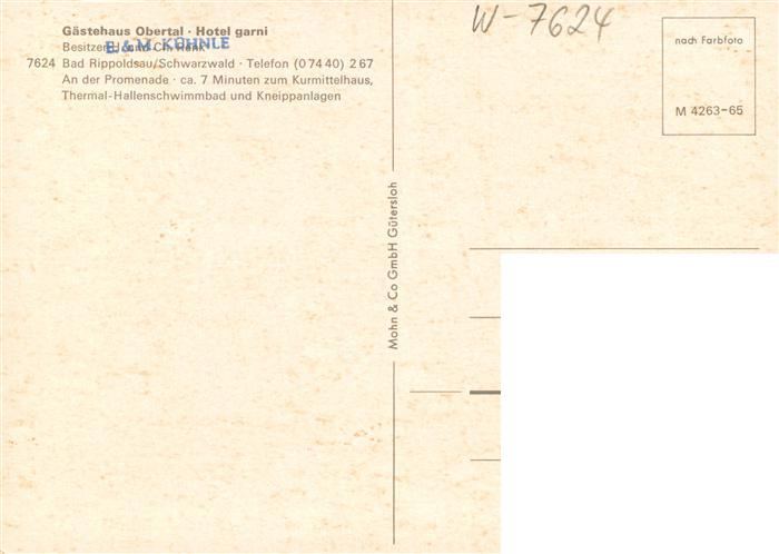 73924922 Bad Rippoldsau Schwarzwald Gaestehaus Obertal Hotel garni Fremdenzimmer Gastraum postalisch nicht gelaufen Erhaltung siehe scans [FriedD77] KatCode: 11110008237075