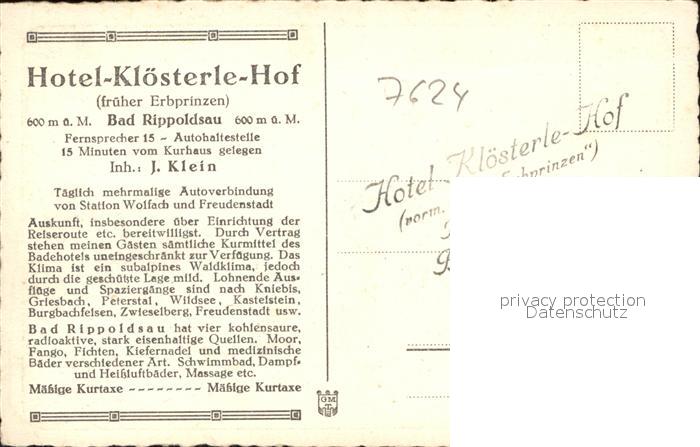 41594066 Bad Rippoldsau Schwarzwald Hotel Klösterle Hof KatCode 11110008237075