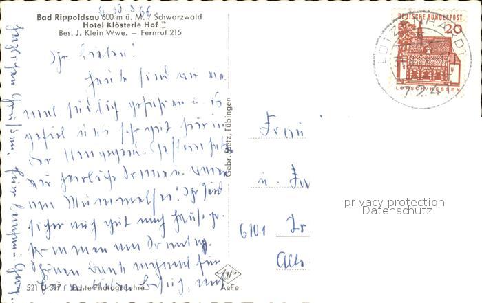 72098294 alte Postkarte Bad Rippoldsau Schwarzwald Hotel Kloesterle Hof postalisch gelaufen Erhaltung siehe scans KatCode: 11110008237075
