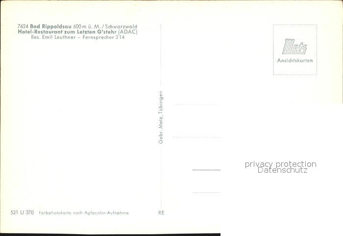 72466424 Bad Rippoldsau Schwarzwald Hotel Restaurant zum Letzten Gstehr postalisch nicht gelaufen Erhaltung siehe scans KatCode: 11110008237075