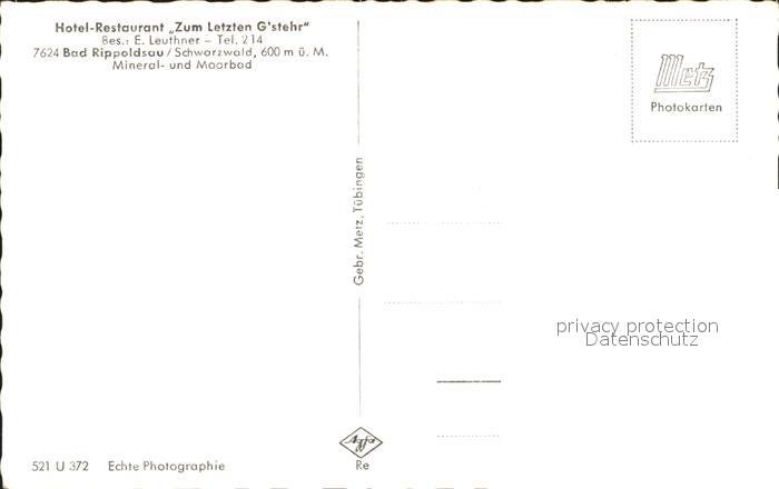 71953114 Bad Rippoldsau Schwarzwald Hotel Restaurant Zum letzten G`stehr postalisch nicht gelaufen Erhaltung siehe scans KatCode: 11110008237075
