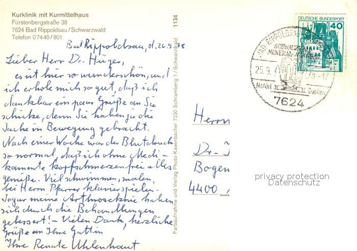 73022709 alte Postkarte Bad Rippoldsau Schwarzwald Kurklinik Kurmittelhaus postalisch gelaufen Erhaltung siehe scans [KathaD81] KatCode: 11110008237075