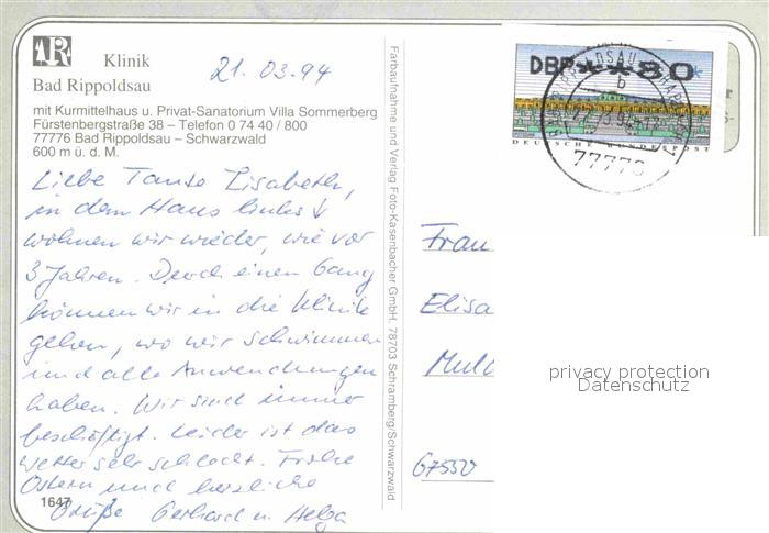 72754465 alte Postkarte Bad Rippoldsau Schwarzwald Kurzentrum Fliegeraufnahme postalisch gelaufen Erhaltung siehe scans [WerneD78] KatCode: 11110008237075