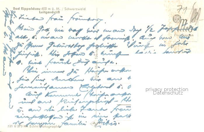 73769115 Bad Rippoldsau Schwarzwald Luitgardstift postalisch nicht gelaufen Erhaltung siehe scans [FriedD77] KatCode: 11110008237075