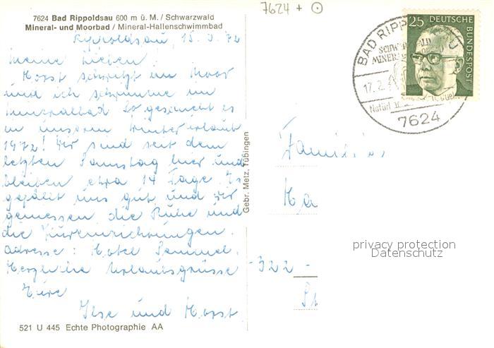 73669655 alte Postkarte Bad Rippoldsau Schwarzwald Mineral- und Moorbad Hallenschwimmbad postalisch gelaufen Erhaltung siehe scans [FriedD77] KatCode: 11110008237075